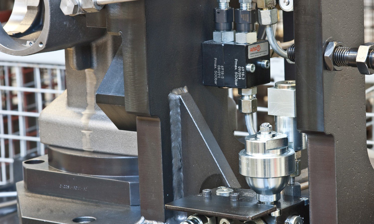 AMF英世齐的摆动夹、角度型定位块和高强度液压单元解决了复杂几何体的夹持难题:定位销具有大导入角,能无卡滞进孔。零点定位系统的高吸入力和锁紧力可应对重载件,内置安全机构还能防止油密封失效引起的卡滞。