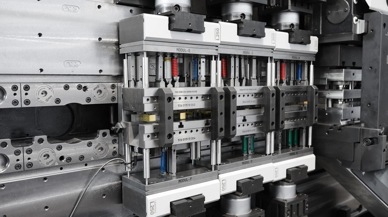为了缩短准备时间,Bihler开始推动模具和设备的模块化。模具被拆分为不同工艺单元,通过统一接口组合使用;设备也预留标准安装工位,使不同产品之间可以通过“更换模块”来实现切换。